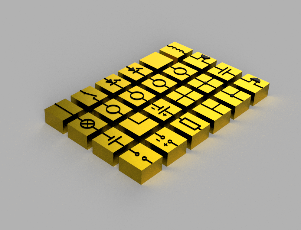 Duplo kompatible Bausteine für Schaltsymbole, die sich gut zweifarbig drucken lassen. Für M, V, A in “leere” Kreise vorgesehen, in welche Buchstaben geklebt werden können.