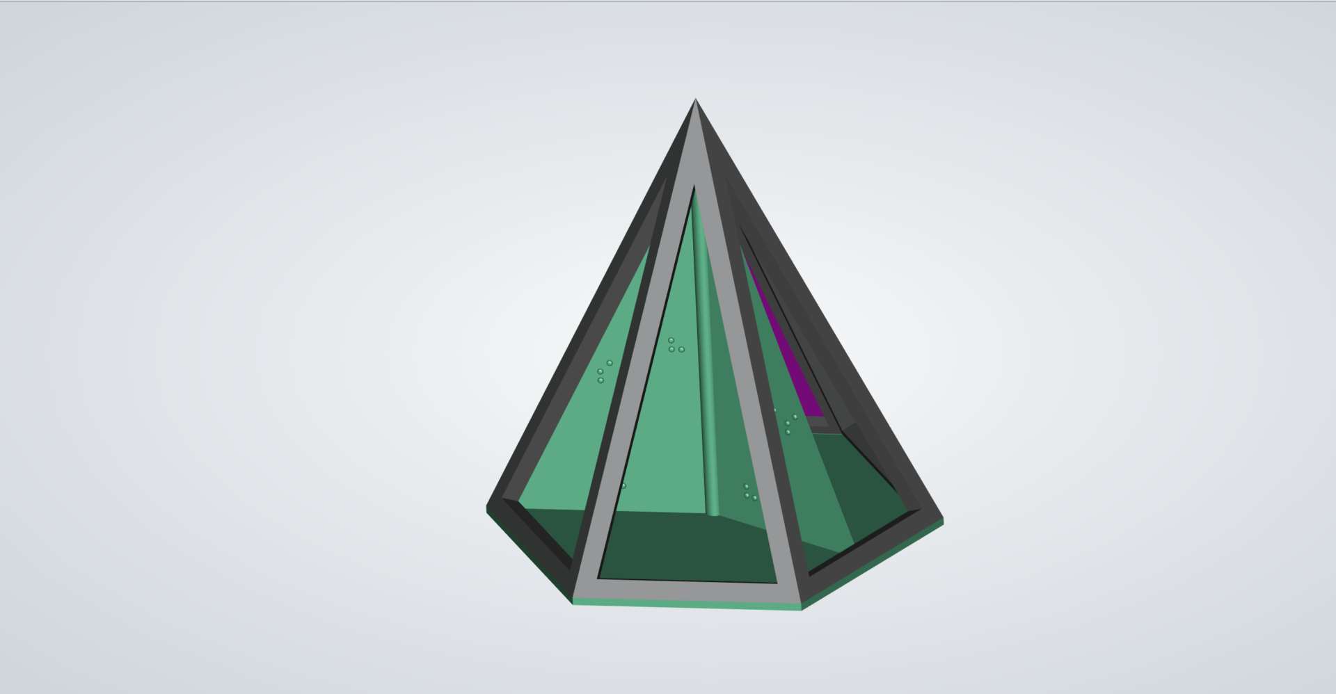 Sechseckpyramide mit innenliegenden Dreiecken. 3 teiliger Druck, Variante mit nur halber Seitenfläche